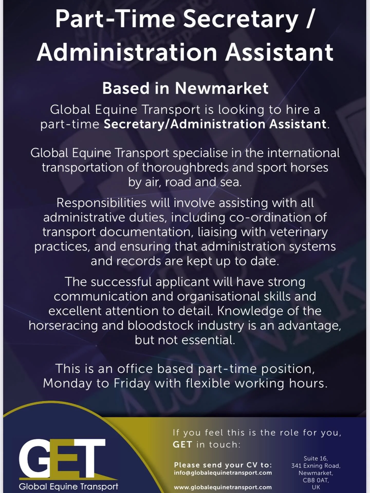 Welcome to Global Equine Transport, your trusted partner for seamless international and domestic horse transportation. Located at the heart of British Horse Racing in Newmarket, we offer strong connections and expertise, ensuring your horse is in the best hands.